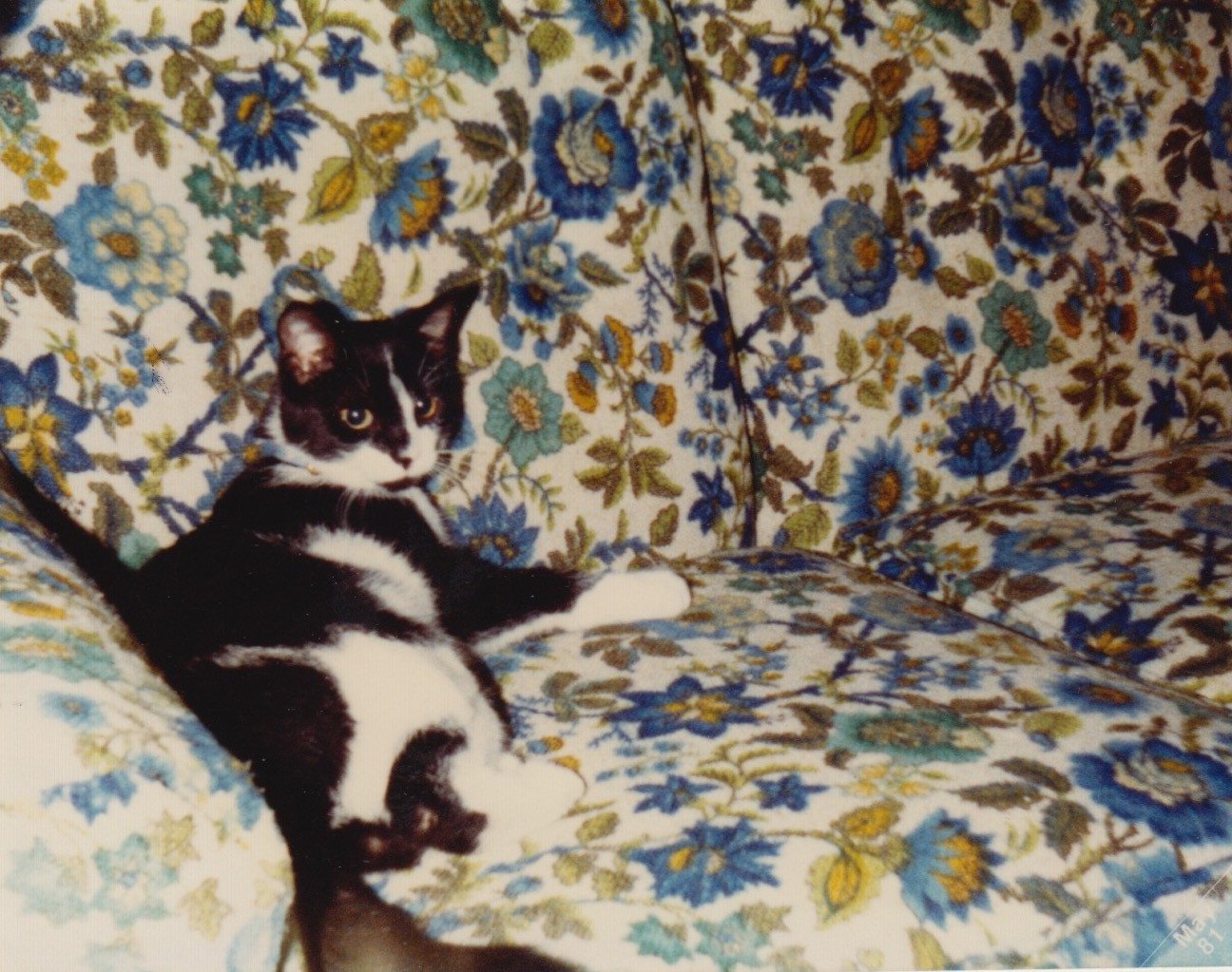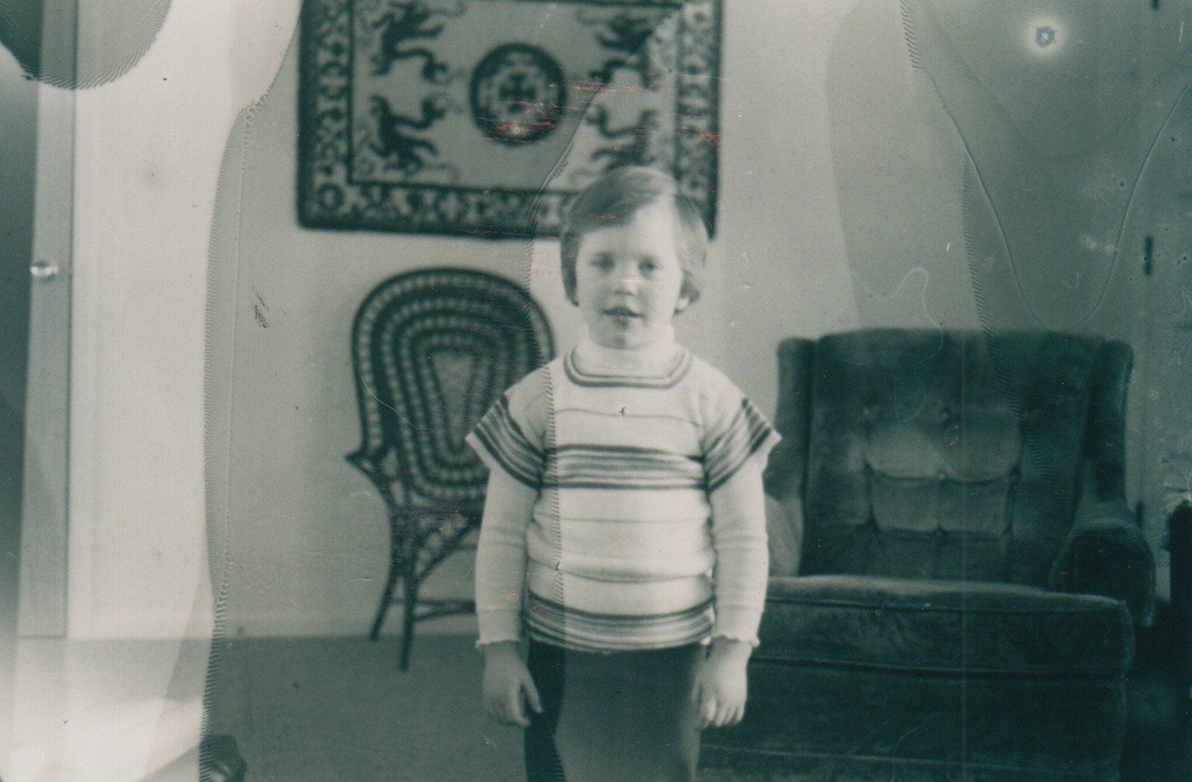 Jasper, the family cat, on Daye’s parents’ sofa in their family room, in 1982. Daye, age 3, during the blizzard of 1978.